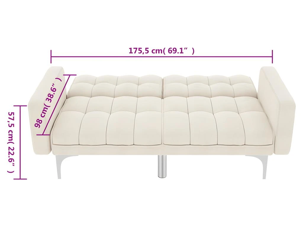 - Dimensions du lit (lorsqu’il est entièrement étendu) : 175,5 x 98 x 57,5 cm (L x l x H)