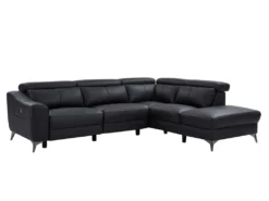 Canapé D’angle Droit Relax électrique En Cuir De Vachette Noir PUNO II