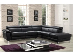 Canapé D’angle Relax électrique En Cuir SITIA – Noir – Angle Droit
