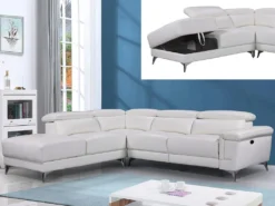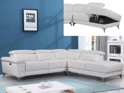 Canapé D’angle Relax électrique En Cuir PASCALINE – Ivoire – Angle Gauche