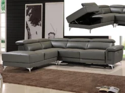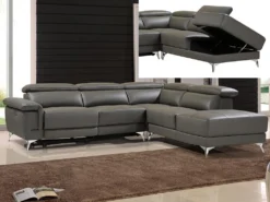 Canapé D’angle Relax électrique En Cuir PASCALINE – Anthracite – Angle Droit