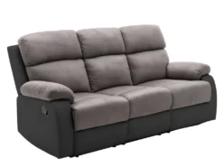 Canapé 3 Places Relax En Microfibre Et Simili Gris Et Noir BRODY