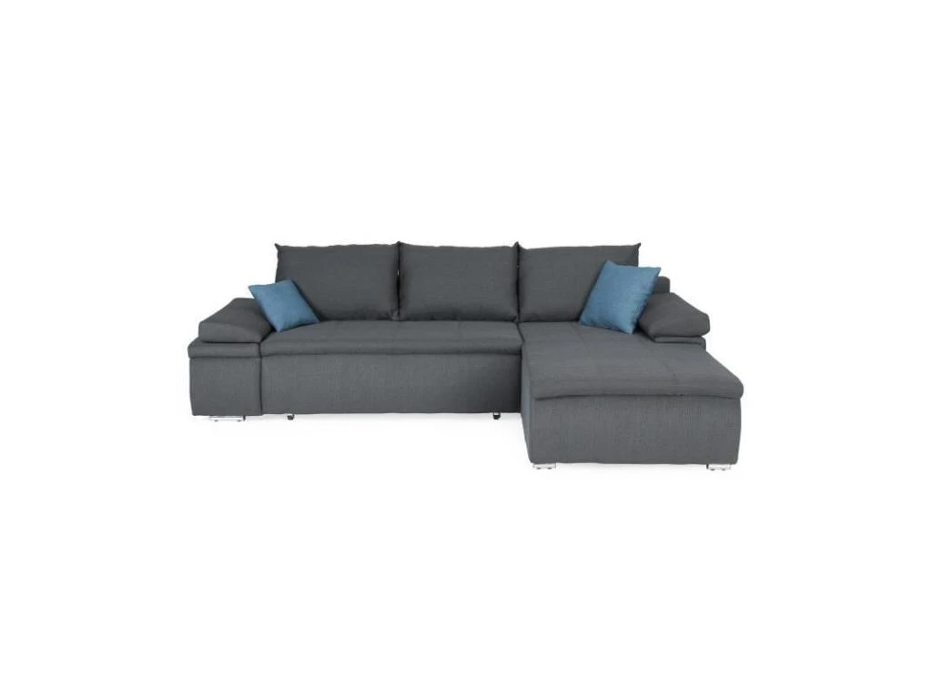 Canapé D’angle Convertible Droit 4 Places Coffre Martin Velours Côtelé Gris Foncé