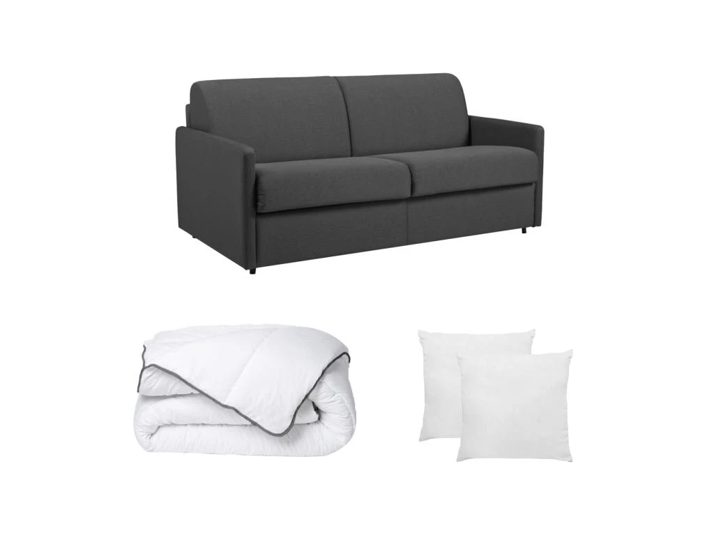 Quelques secondes suffisent à transformer le canapé CALIFE en couchage avec le mécanisme convertible express : tirez simplement sur la poignée située derrière les coussins de dossier pour déplier le matelas ! Ses accoudoirs fins permettent un encombrement minimum, le canapé CALIFE est donc parfait pour les petits espaces !