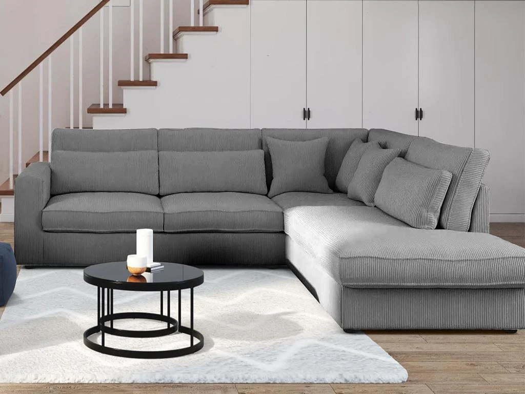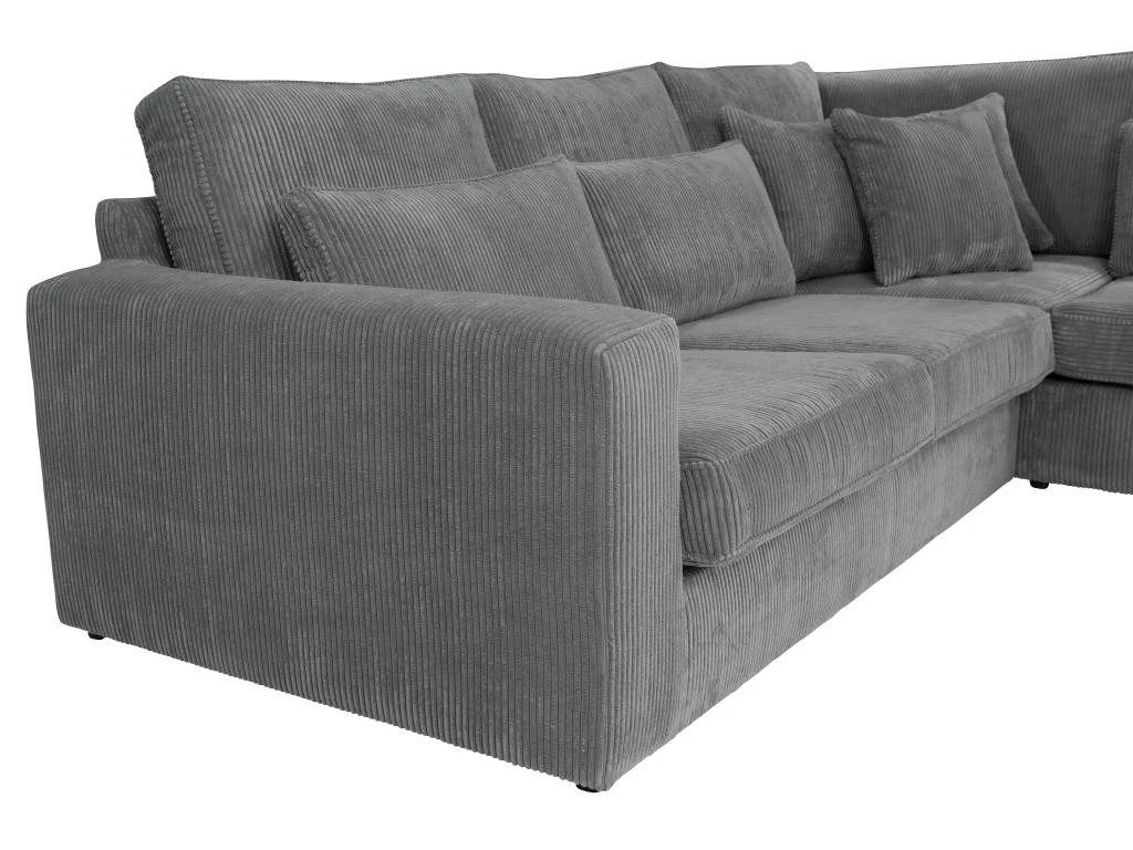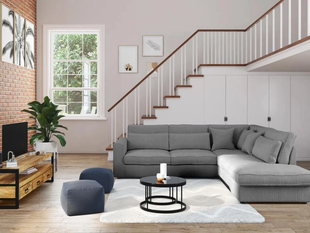 Le grand canapé d’angle MONDOVI saura vous séduire grâce à son velours côtelé très tendance qui vous apportera douceur et confort au quotidien. Ses nombreux coussins en velours offrent également un accueil moelleux et délicat. Avec son format XXL, profitez de moments conviviaux entre amis ou en famille !
