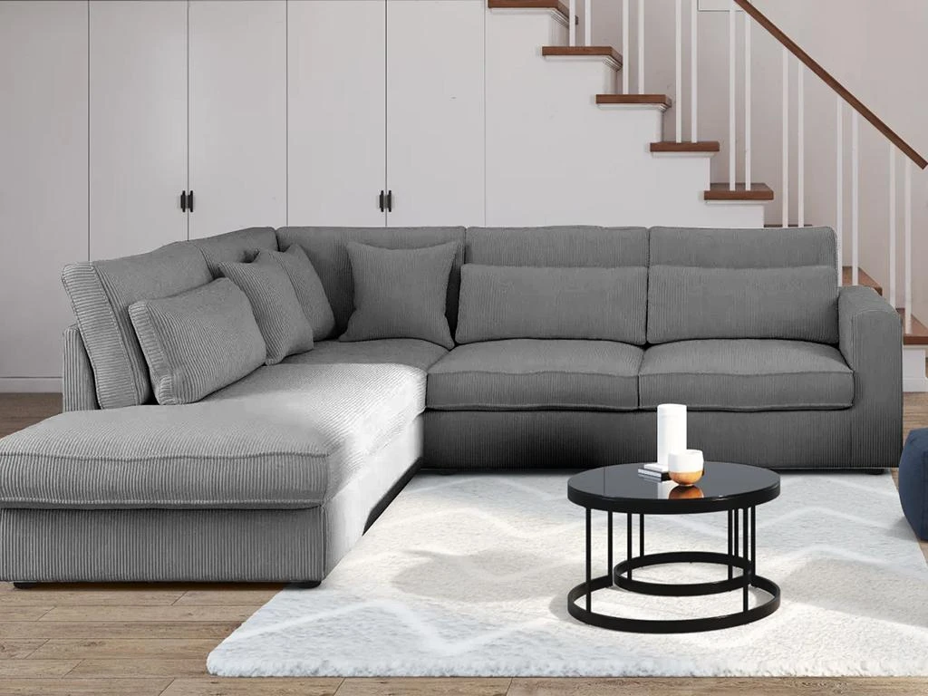Le grand canapé d’angle MONDOVI saura vous séduire grâce à son velours côtelé très tendance qui vous apportera douceur et confort au quotidien. Ses nombreux coussins en velours offrent également un accueil moelleux et délicat. Avec son format XXL, profitez de moments conviviaux entre amis ou en famille !