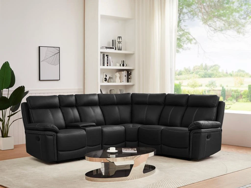 Vous souhaitez profiter d’un confort personnalisé dans votre salon ? Optez pour le grand canapé d’angle relax en cuir DEVERA, conçu pour rehausser instantanément votre espace de vie. Grâce à sa conception en angle, ce canapé offre une abondance d’espace pour vous détendre en famille ou entre amis. Les sièges dotés du mécanisme de relaxation vous permettent de trouver la position idéale pour vous détendre.