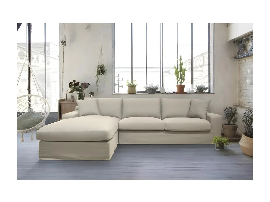 BELAMI – Canapé D’angle 4 Places En Velours Côtelé – Beige – Angle Droit