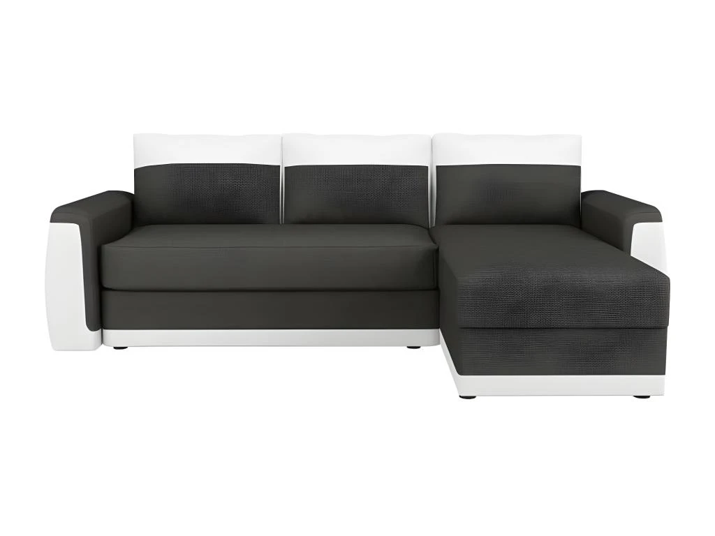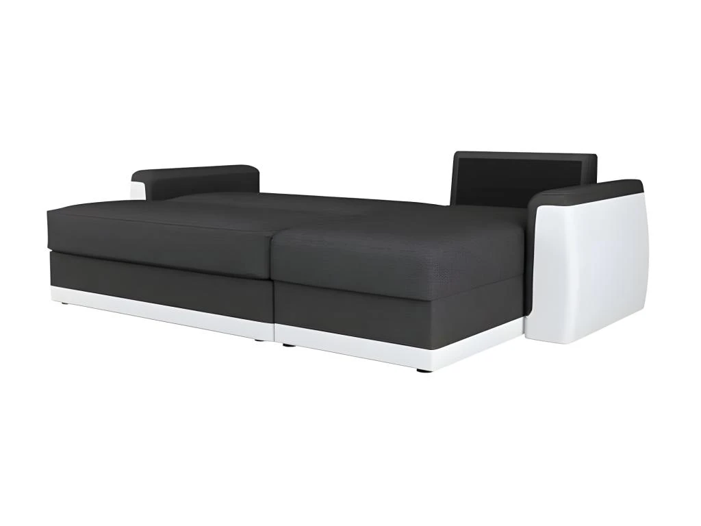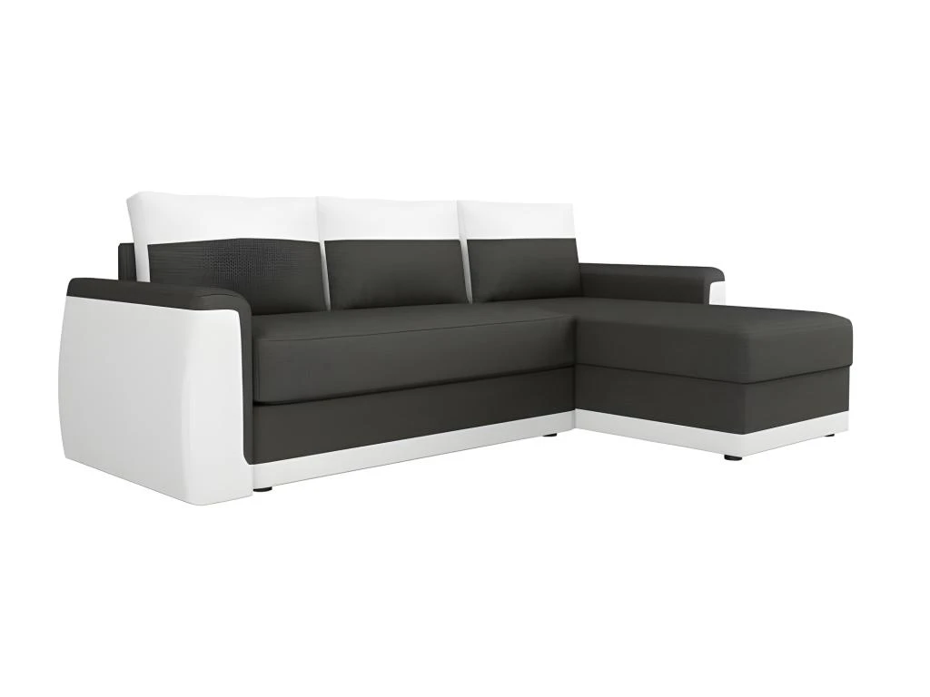 JAMES Canapé d’angle convertible 3 places blanc et gris anthracite – Style et design contemporain – Structure en panneaux de particules, contreplaqué et hetre – Revetement simili et tissu sawana – Ferme – Couchage l 122 x L 190 cm – Avec coffre de rangement – Mousse PU 25kg/m3 + 16kg/m3 – Méridienne réversible – Fabrication européenne – Canapé L 230 x P 142 x H 85 cm – Assise L 190 x P 54x H 42 cm.