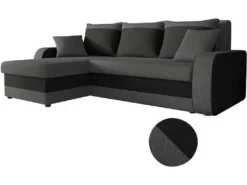 Canapé D’angle Convertible En Tissu « Kris » – 3 Places – Gris/Noir