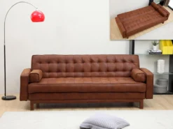 Canapé Convertible Clic-clac En Microfibre ELEANOR – Marron Effet Vintage
