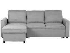 Canapé Angle à Gauche Modulable – Aberdeen – Convertible Avec Pouf Ottoman En Velours Gris Moderne