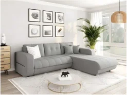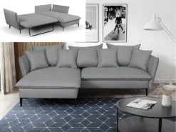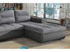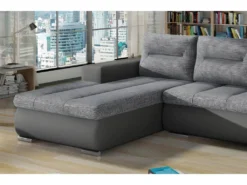 Canapé D’angle Convertible – En Tissu Gris Et Simili Gris, Angle Gauche (vu De Face) – LUCAS