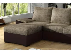 Canapé D’angle Convertible – En Tissu Marron Et Simili Chocolat, Angle Gauche (vu De Face) – LUCAS