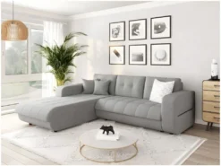 Canapé D’angle Convertible Et Réversible En Tissu Beige LADAZIA