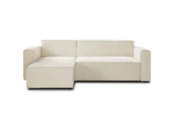 Canapé D’angle Convertible Réversible Lorenzo En Velours Côtelé Beige