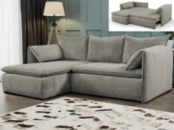 Canapé D’angle Convertible En Velours Côtelé Taupe TEODORA De PASCAL MORABITO – Angle Gauche
