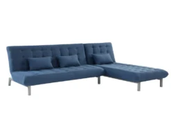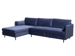 Canapé D’angle Gauche Convertible En Velours Bleu Nuit ALEXANDRA