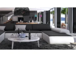 Canapé Panoramique 7 Places En Simili SICILE – Bicolore Blanc Et Gris