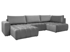 Canapé D’angle Droit Panoramique Convertible En Velours Gris ESILIA