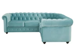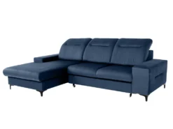 Canapé D’angle Gauche Convertible En Velours Bleu Nuit ESILIA