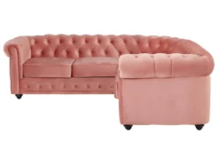 Canapé D’angle Gauche Convertible En Velours Rose SAMARA De Pascal Morabito