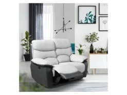 Canapé 2 Places Relax Manuel – Simili Gris Clair Et Gris Foncé – SOBRAL