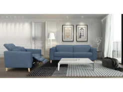 Canapé Relaxation 2 Places En Tissu Bleu Et Pieds Bois – POLO