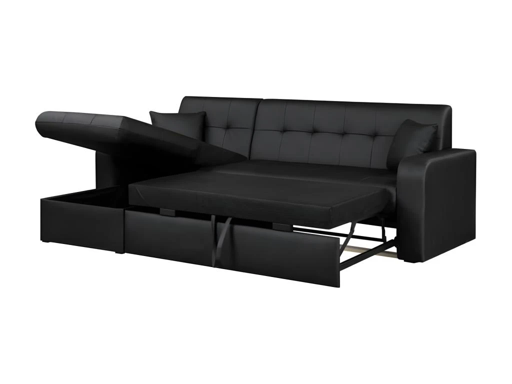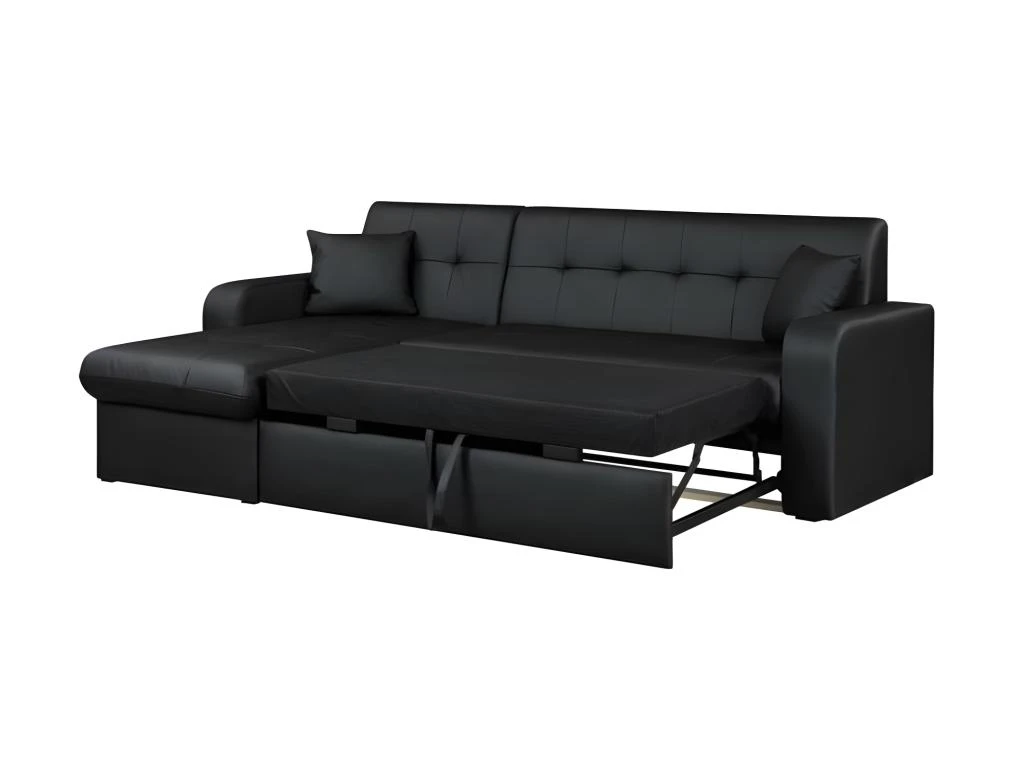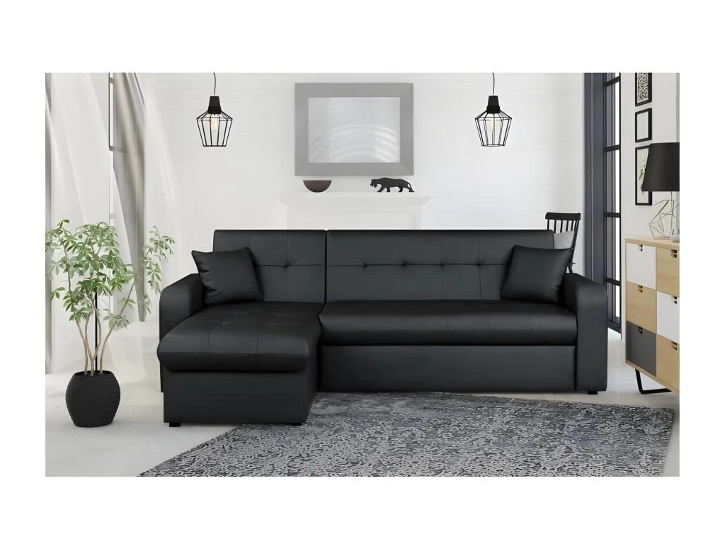 ROMAN Canapé convertible angle réversible 3 places – Style et design contemporain – En pin massif, panneaux de particules – Revetement simili – Confort ferme – Couchage 131x200cm – Coffre de rangement – Ressorts nozag – Mousse polyuréthane 30kg/m3 – Canapé 235×85/153x81cm – Assise 200×85/153x42cm – Fabrication européenne.